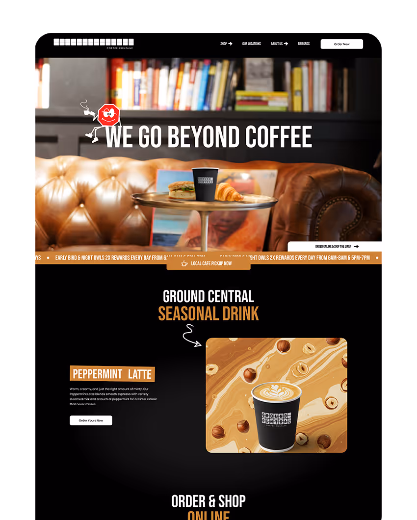 With more than 8 cafés across NYC, Ground Central needed a refreshed brand identity, a strong digital presence, and engaging customer experiences to fuel growth and strengthen its position as a leading coffee chain.